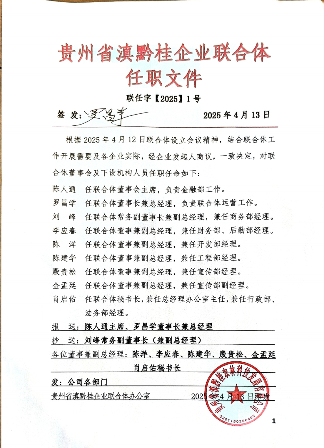 贵州省滇黔桂农林科技发展有限公司-任职文件
